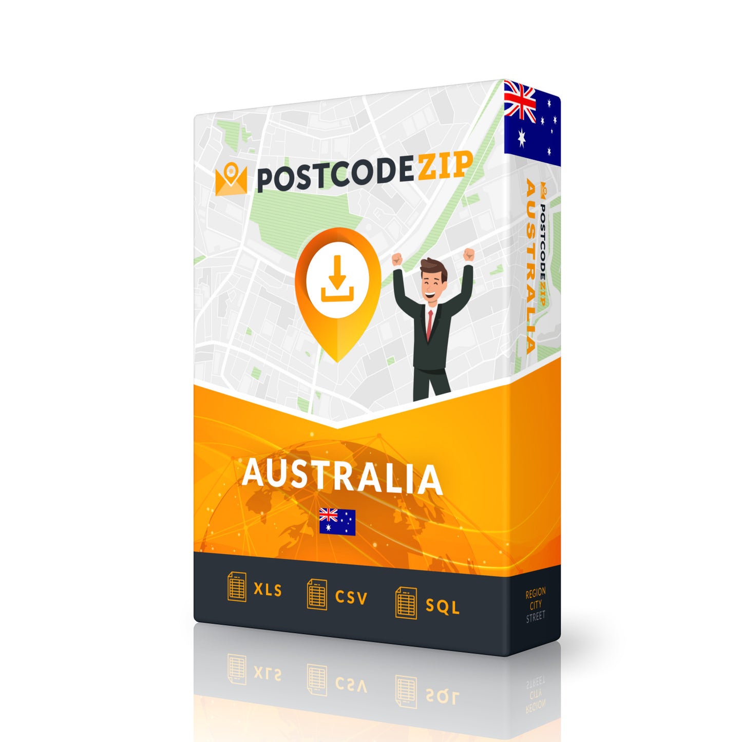 This product contains the complete list of all postal codes/cities in Australia. The file contains 2 624 postal codes, 15 299 cities across the entire country.